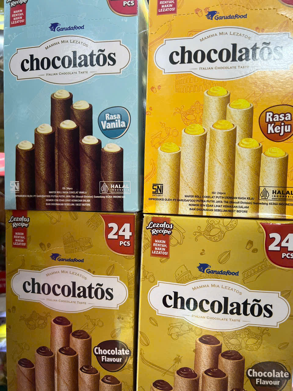 Bánh cuộn xốp hương vani, hương socola, hương phô mai – Hộp 336g (24 gói)